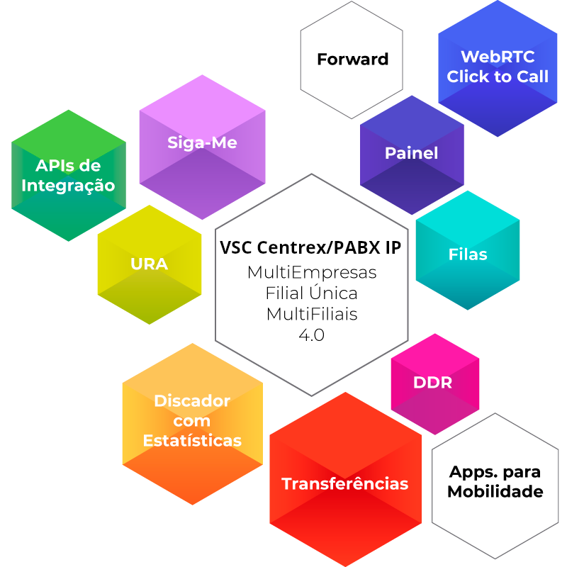 O Softswitch VSC suporta múltiplas marcas de Media-Gateways e Protocolos (SIP-I, SS7-SIP, SIP), IP-Phones, Softphones, PABXs IP, etc. Leia mais...